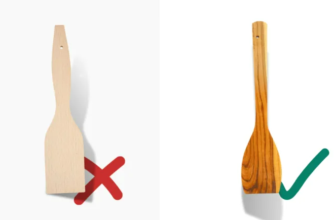 Les ustensiles en bois bon marché sont généralement fabriqués à partir de bois tendre comme le pin. Évitez-les et optez pour ceux en bois dur, commeolivier, bambou, hêtre ou érable,plutôt.